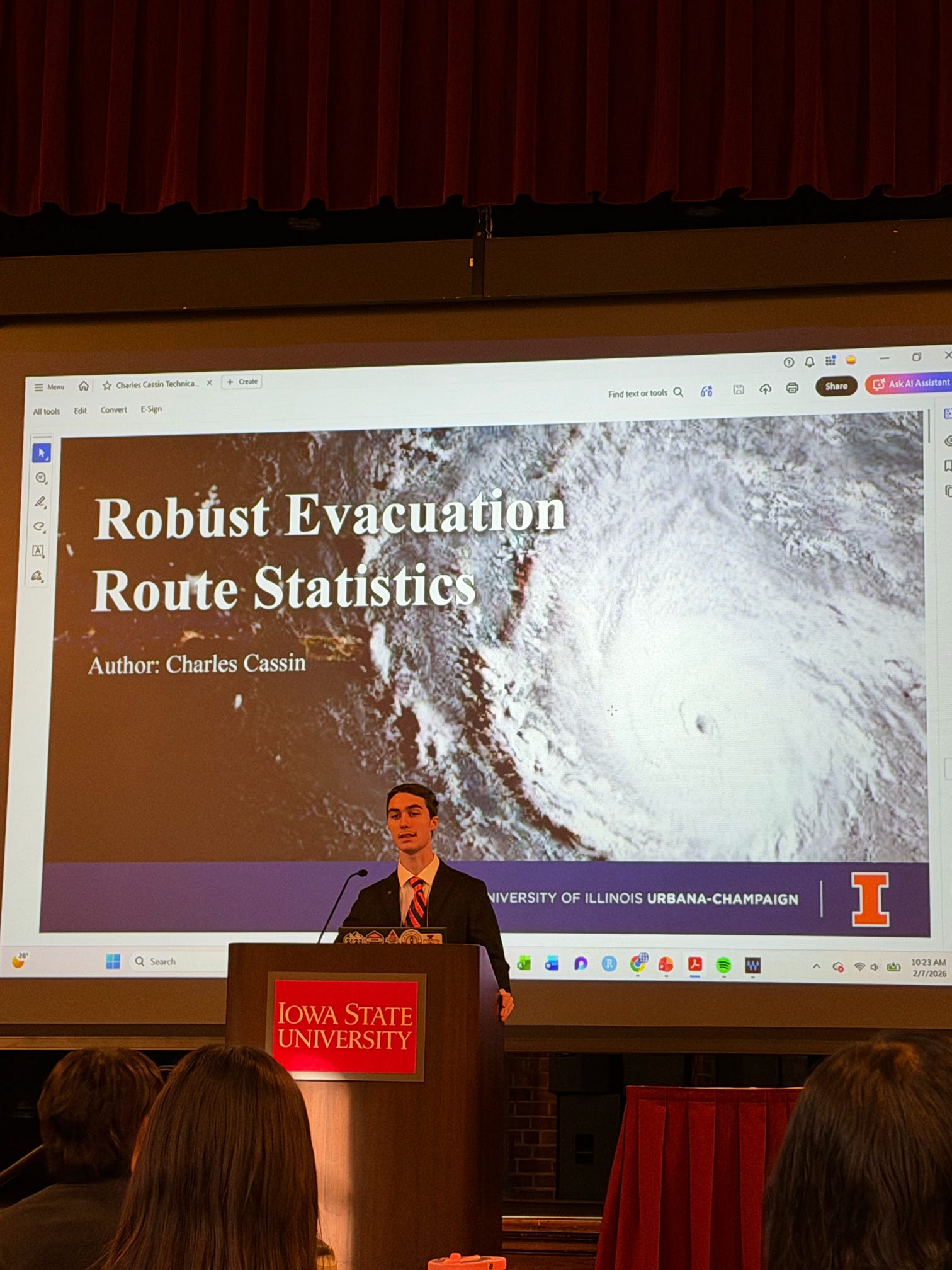 Chase Cassin secured second place for his research on robust evacuation route statistics. His paper analyzed